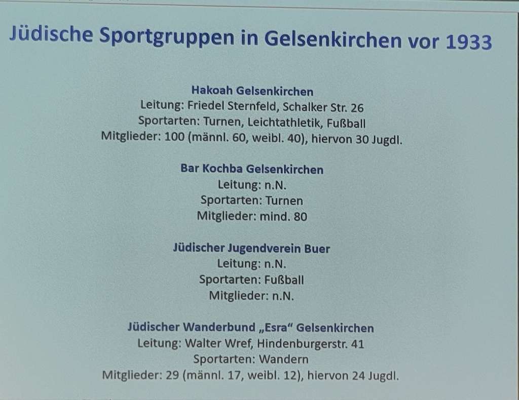 Dr. Henry Wahlig vom Deutschen Fußballmuseum gab anschließend einen lebendigen Einblick in die Geschichte der jüdischen Sportbewegung. Diese seien als Reaktion auf den Antisemitismus deutschnationaler Sportvereine entstanden. Das seien im frühen 20. Jahrhundert vor allem Turnvereine gewesen, die oft dem Vorbild von „Turnvater Jahn“ (eigentlich Johann Friedrich Ludwig Christoph Jahn) gefolgt seien, der ein starker Nationalist und mindestens latent antisemitisch gewesen sei.