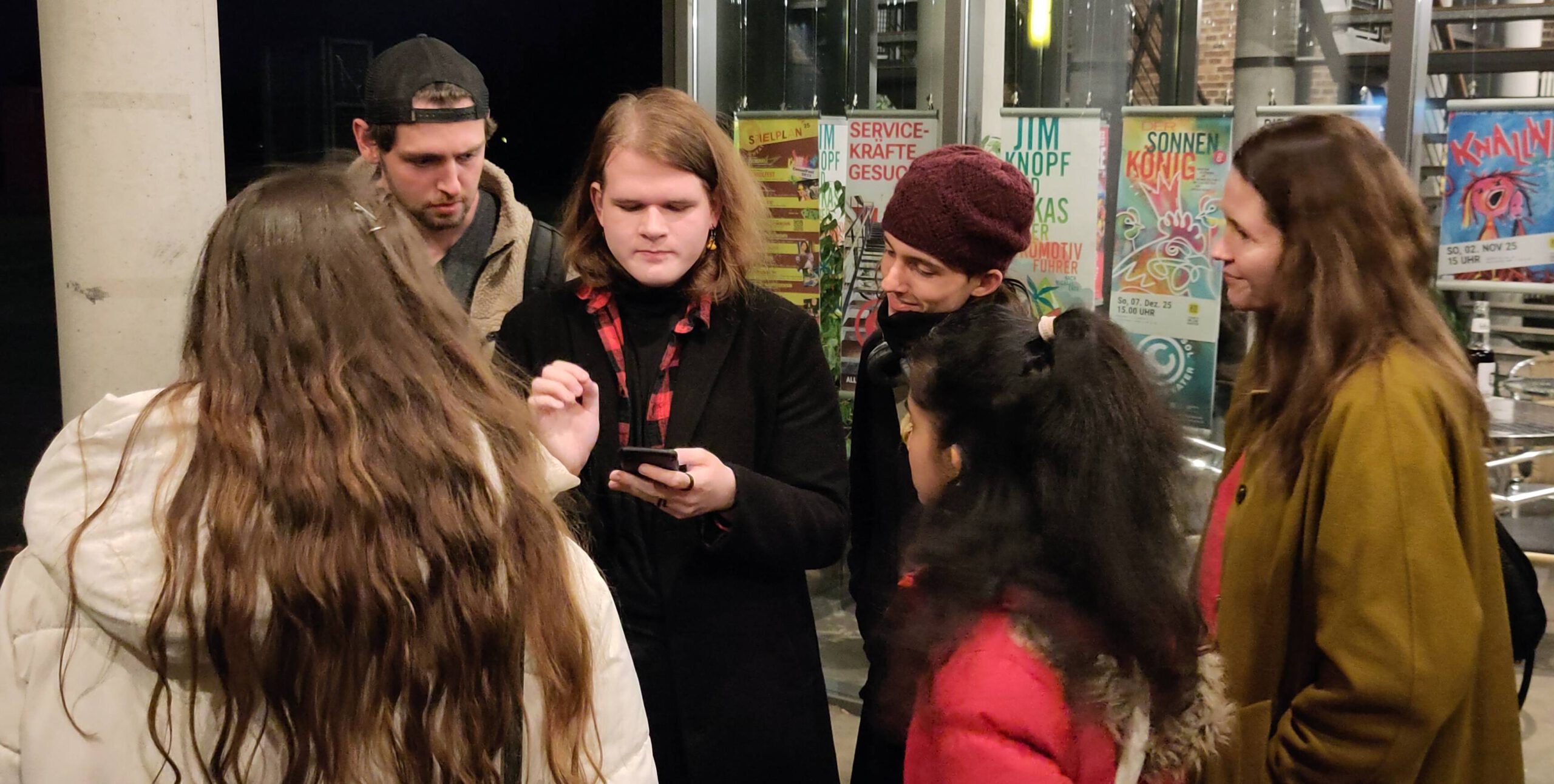 Am Donnerstag, den 30.10.2025, besuchten 14 Studierende und Lehrkräfte das Consol-Theater in Gelsenkirchen-Bismarck. Nico Loll (KS1a) erzählte uns zur Begrüßung von seinem einjährigen Praktikum dort. Wir danken ihm für diesen lebendigen Einblick in das Theater und seine vielfältigen Tätigkeiten dort. So arbeitete er mit bei einem sehr provokanten Gesprächsformat, das eine offene und kontroverse Diskussion über politische Fragen ermöglichen sollte.